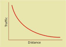 A key feature of the SIM is the Distance Decay (DD) profile.  This is a curve that summarizes how patronization of the store declines over distance.  For the first 1–2 km the store dominates the market.  As distance from the store increases, customers are more likely to consider other options, and the likelihood of patronization of that store declines.  There are differences between the DD profiles of businesses.  A shopper may drive 20 km for a good deal on a major appliance, up to 10 km for weekly groceries, but for just a carton of milk the limit is probably 3 km.  Therefore a convenience store has a completely different profile from an appliance store.  The compactness and degree of urbanization of the community, distribution of competing and complementary opportunities, shopping traditions, etc, make a difference.  Even for a single retail chain, some locations have profiles significantly different from others, even within the same city.  The model specification itself may differ, depending on the nature of competitive forces.